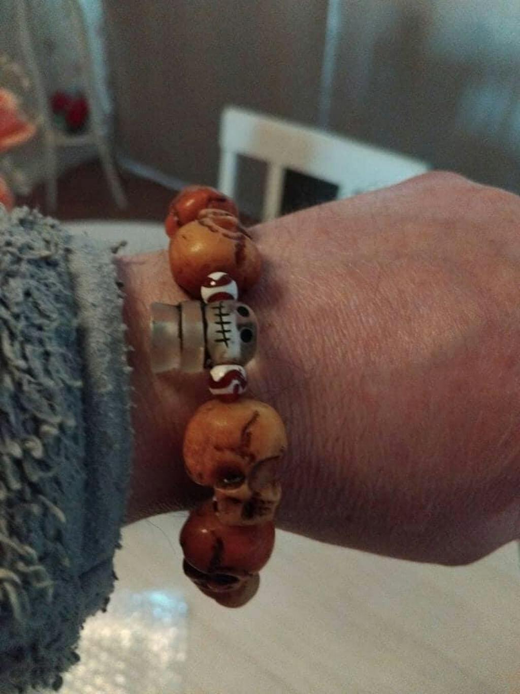 A very very beautiful bracelet, very good weight to the skulls, and the carvings are beautiful, and I love the gift you sent with it as well it’s very beautiful, thank you