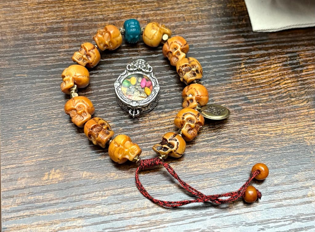 Super super beautiful mala with beautiful works of art all over. Every piece on this mala is beautifully made, the bones are beautiful every part of it is perfect!!!