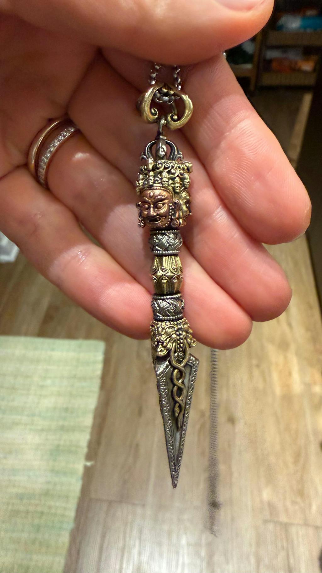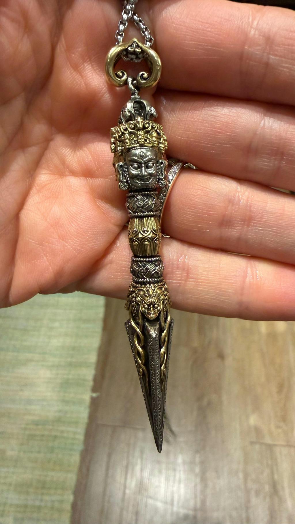 This Vajra Phurba has intricate detail, unlike any I have seen. I can tell that great care was put into its creation. High quality materials and master craftsmanship.