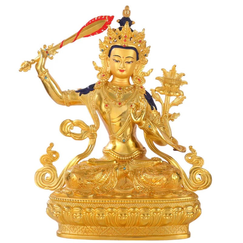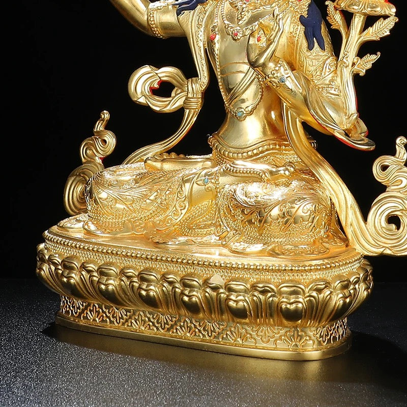 These finely crafted Manjushri and Samantabhadra statues are made of premium brass with full gilding in traditional Tibetan style. Available in 16 cm (6.3”), 21 cm (8.3”), and 33 cm (13”) heights, they are perfect for home shrines, meditation spaces, or as meaningful spiritual gifts. Each statue embodies wisdom, compassion, and virtuous practice, bringing blessings of insight, peace, and spiritual harmony to any space.